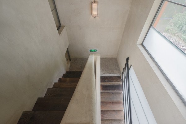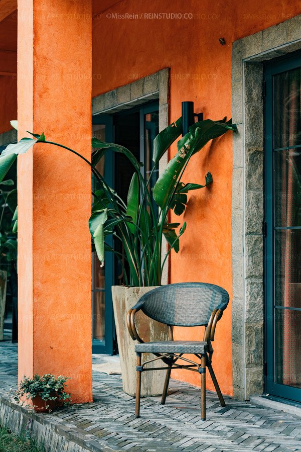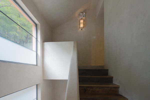 远远地,橘色小红房在竹林里被层层叠叠的绿色映衬得格外好看,走近了才注意到,原来这橘红色的外墙面不单色彩夺目,细看能发现若有若无的肌理纹路,使得整个建筑增加了质感。后来才知道这个不起眼的细节,建造时需要不断打磨、上漆、再打磨,可是让施工程序复杂了好几倍。