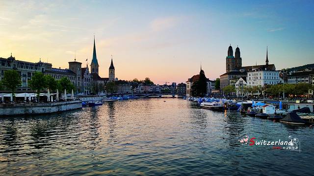 傍晚的苏黎世湖边很浪漫。沿着利马特河走,很快就到湖边了。听听街头艺人的弹奏吧,看着日落,是一份难得的回忆。