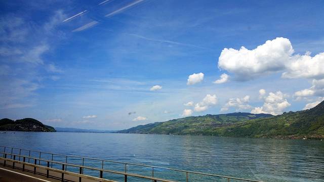 下面说一下瑞吉山游览的方式。做攻略时发现登瑞吉山顶有很多种方式。这里只说我调研到的,个人认为最优的方式:1)从距离卢塞恩火车站最近的码头(就在火车站出口对面),乘坐游船,游览卢塞恩湖;2)游船经停几个码头,其中对我们来说最重要的两个码头就是Weggis和Vitznau。从卢塞恩去的时候,先经过Weggis,这时候先不下,到了Vitznau再下;3)出了Vitznau码头,直接就可以上登山火车,记得坐在最左侧哦,一直坐到山顶(也有人在Kaltbad站下车徒步上山的);4)山顶游览完成后,可以徒步下来(当然也可以坐火车下来)到Kaltbad站,在这里坐缆车,到达Weggis小镇,因为看别人的游记说,到Weggis向下的缆车很刺激,有时候有失重的感觉;5)在Weggis乘坐游船,返回卢塞恩。