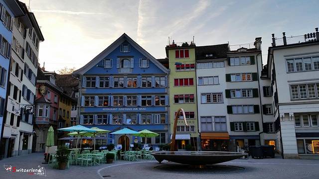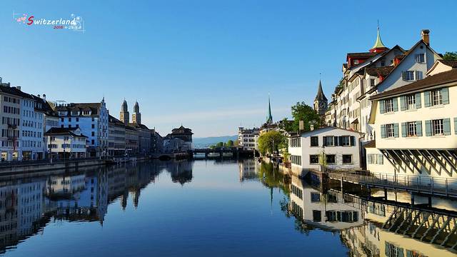 最后一晚入住的苏黎世的hotel platzhirsch,这个酒店性价比还可以,尤其是在苏黎世来讲,130CHF一晚,包含城市税。关键在于位置好,位于老城区,苏黎世主要景点、建筑、以及苏黎世湖都在这附近,而且距离车站也不远,对于只在苏黎世短暂停留,又想看到苏黎世主要景点的人来讲,是一个不错的选择。由于距离老城区很近,一早出来可以观赏到静谧的河流,河流倒影让人以为置身于江南水乡。但是湖中的苏黎世三大教堂提醒我,这是在苏黎世。