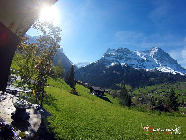 酒店门前的草坪,以及门前的梦幻山坡、艾格峰。有时候还能看到火车在山坡间行走。