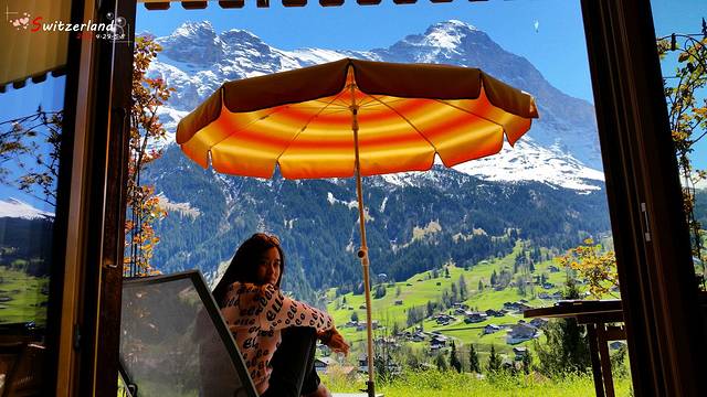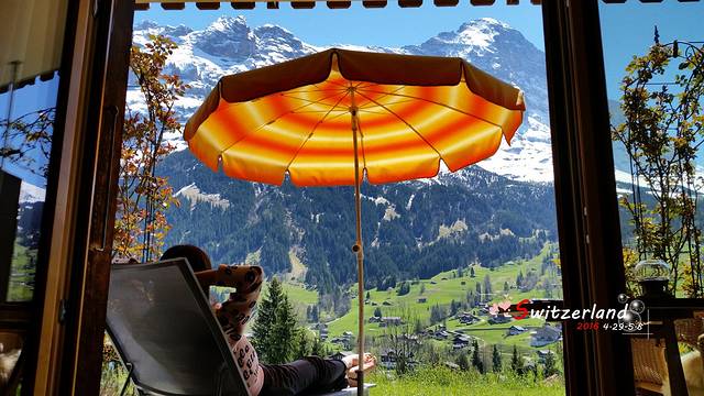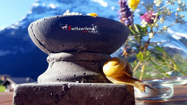 随后两晚住在格林德尔瓦尔德,是让豆豆最为满意的酒店,hotel cabana。两晚住宿价格404.8CHF,含城市税,包含早餐。早餐十分好吃,员工也很热情!住宿条件嘛,请看图片吧,貌似不用多说了。落地窗直面艾格峰,蓝天、雪山、草甸,都是瑞士的招牌风光!倒在躺椅上享受阳光浴简直是顶级享受。以至于退房那天的整个上午,豆豆都是赖在躺椅上、晒着日光浴度过的,并且一直赖到中午。耽误了我去米伦、文根、劳特布伦嫩的行程!住在这里,早上还遇见了阿尔卑斯山脉的邻居,蜗牛先生!囚禁蜗牛先生一个小时,拍出了让我满意的照片。最后奉上早餐图片,现在想想还流口水。虽然Cababa在booking上评分只有8.7,但是我觉得应该超过9,强烈推荐!这个酒店在国内的口碑似乎很好,我们入住的期间好多中国人,大概口口相传吧。哦,对了,如果要享受草坪,一定要在预定时跟酒店直接说明,要负2层的房间(房号大概是1至5),我们的房间是2号房。其他楼上带阳台的房间,价格与负2层的一样,景观相同,但是肯定无法和带草坪的房间相比啊。