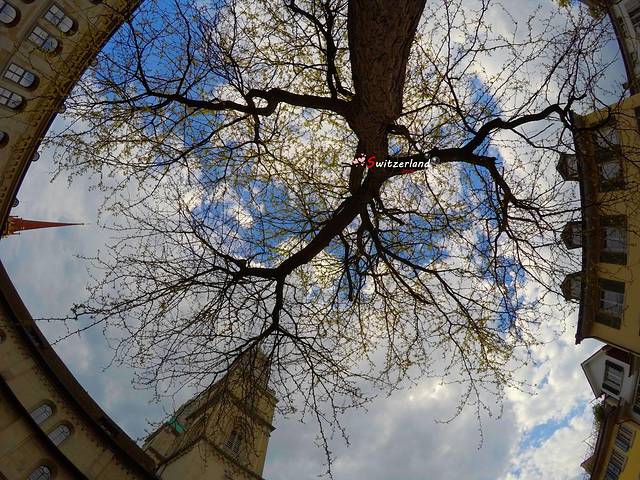 苏黎世大教堂前的小广场有一棵树