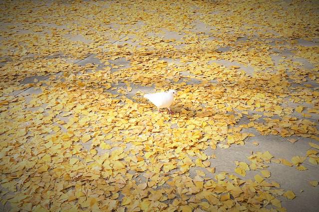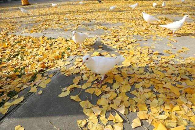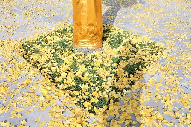 11月中旬,银杏开得正及时,散满一地的银杏叶片让法门寺增色不少。