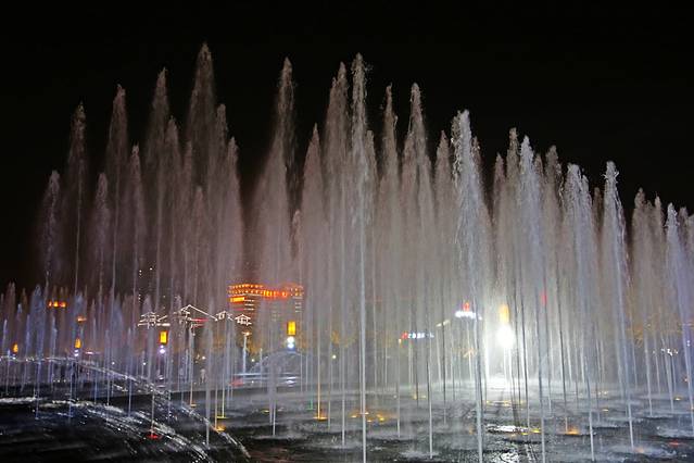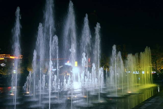 音乐喷泉最前方看见的水喷洒出来是有颜色的,可是后来问了人告诉我们后面是观景台,走到后面反而全程看到的喷泉都是白色的???看来位置很重要!因为抢到一个靠前的位置就没错了,没想到这就大错特错了。条件允许的话可以变换角度和位置观看。
