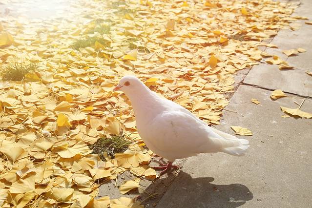 门前的鸽子仿佛早已习惯了来往的人群,安静地观看着。