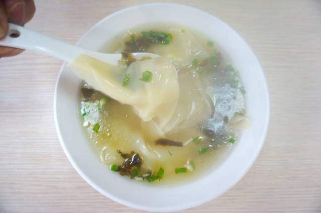 南方称之为云吞,汤底是紫菜加虾干熬成的,很香。但是混沌的话就真心不如在广东吃的了,我们平常吃的“皮薄涵靓”,也就是混沌皮很薄,肉饱满味鲜美,但是在这里吃的混沌恰好相反,皮很多,肉只有那么一丁点。