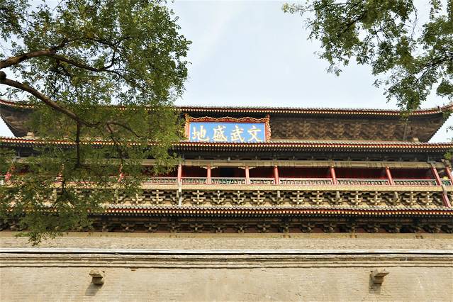 在鼓楼第三檐下,南北各悬匾额一块,南面为“文武盛地”,北匾为“声闻于天”。