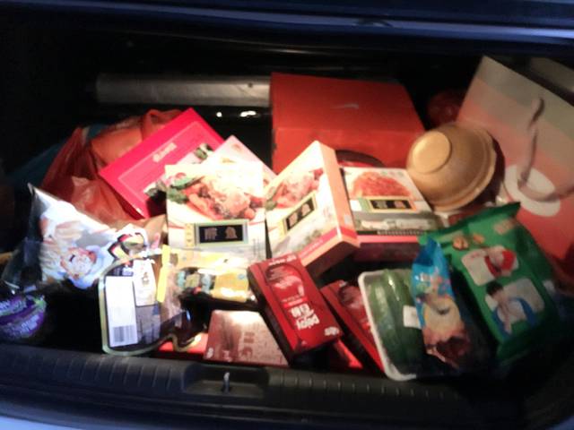 在宏村的小超市买了一堆吃的塞满了后备箱。