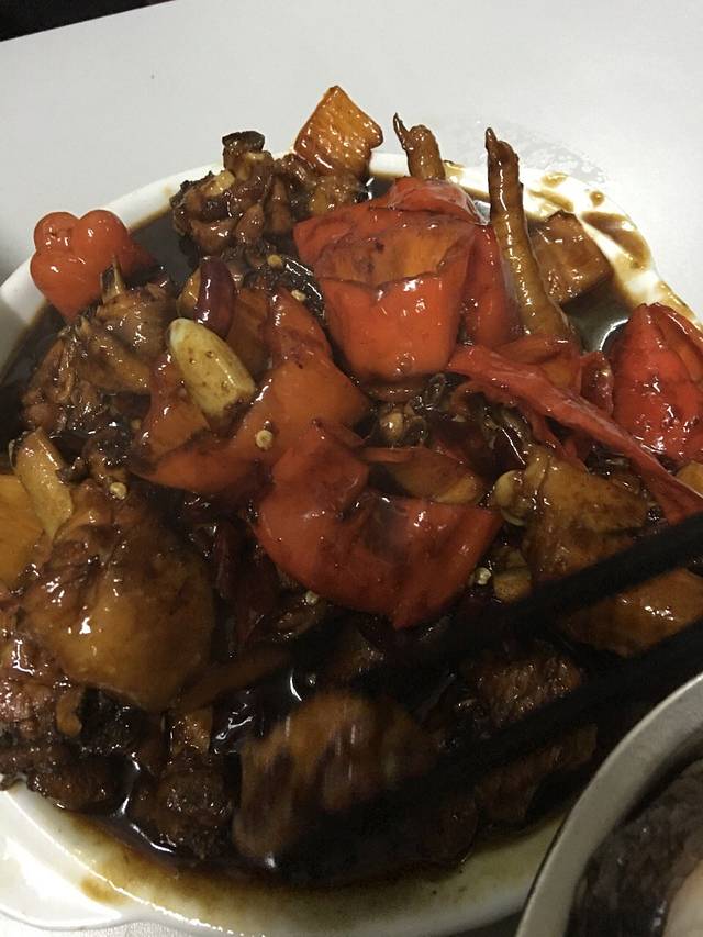 你回我,只要好吃再辣我也吃完它,话落,老板,拿一瓶雪碧。