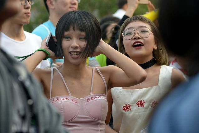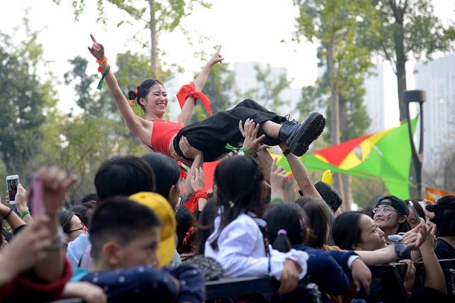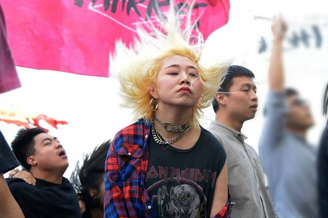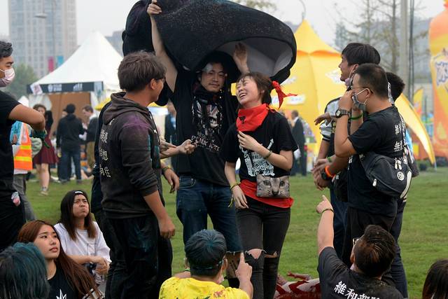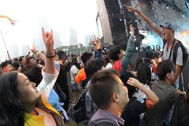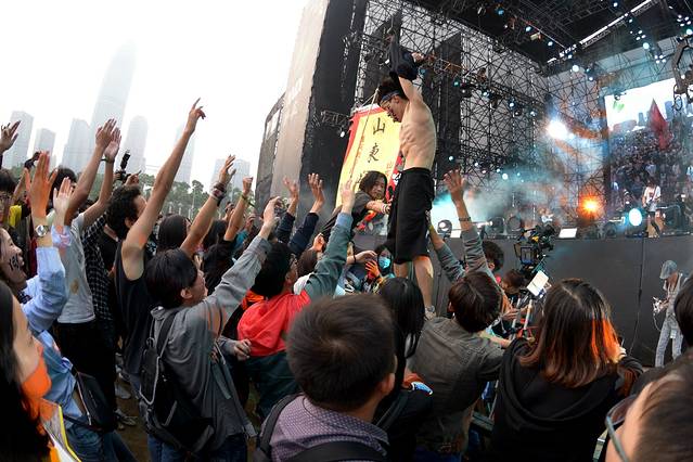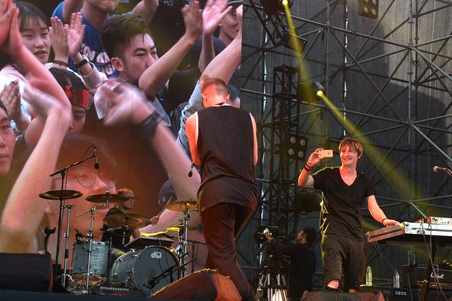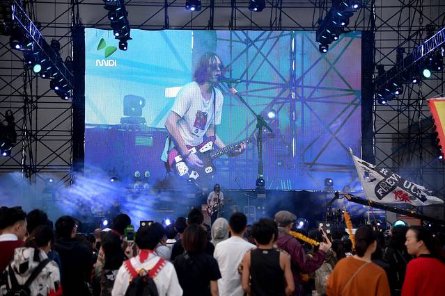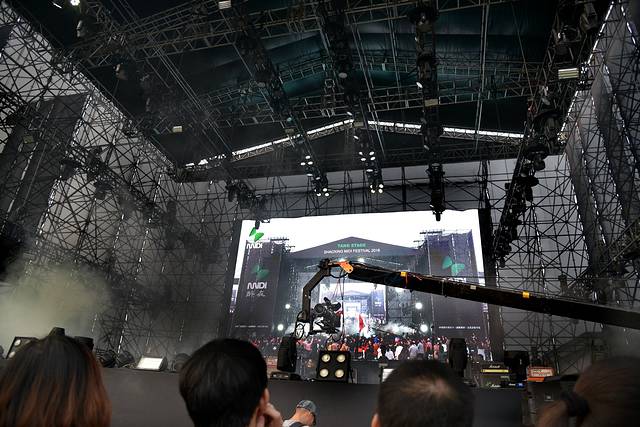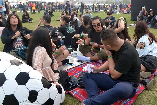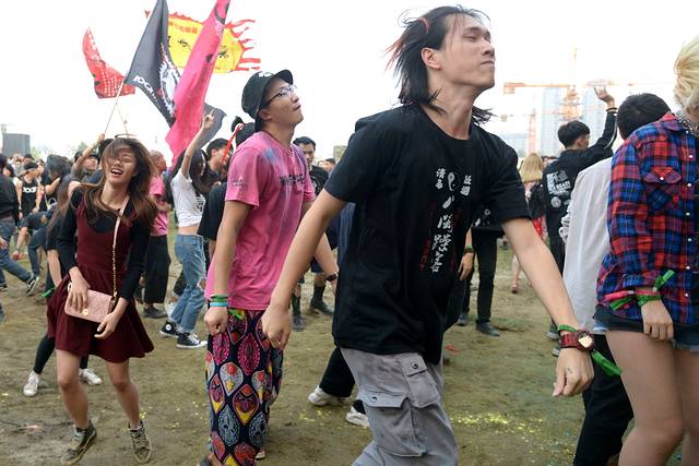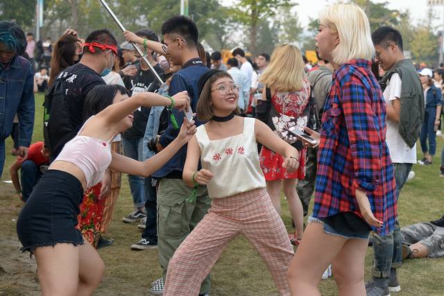 巨大的场地绿荫遍布,唐、战国、孩迷三个舞台排列成三角,你方唱罢他登场,震耳欲聋的音乐此起彼伏。