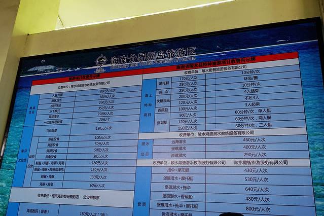 这个是岛上活动的详细价格表,给大家参考一下吧。