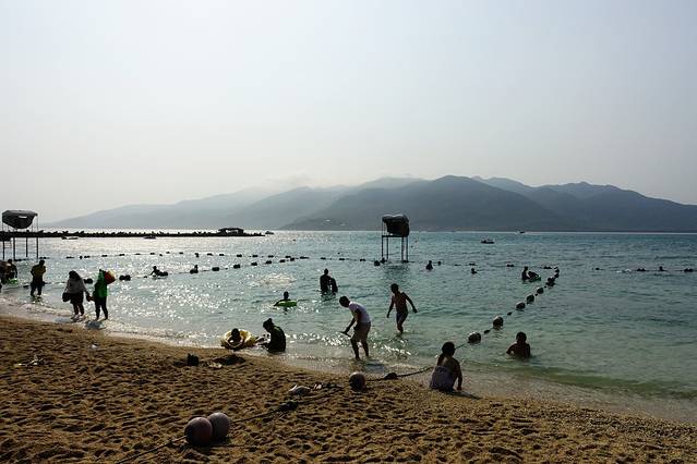 游泳区用绳子圈了起来,这边的浪还是比较大的,圈起来也相对安全一些,沙子一般,不是很细,但海水的感觉还是不错的。