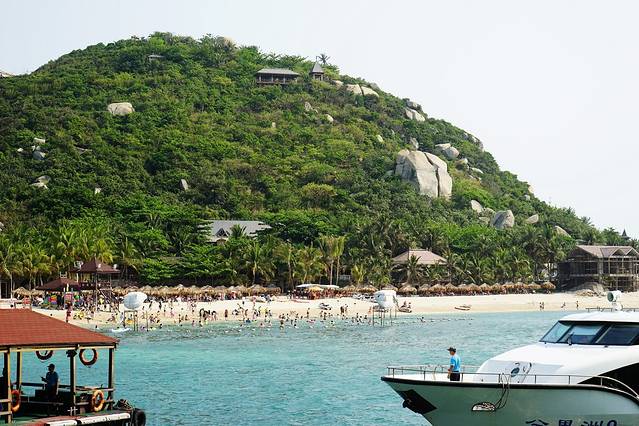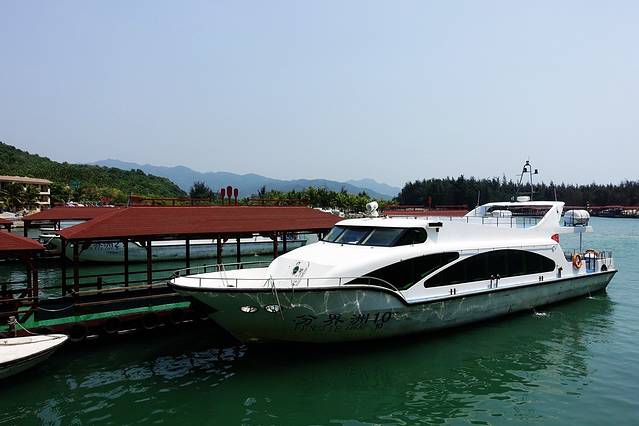 这个就是上船的码头,就在游客中心后面,这游艇倒是和蜈支洲岛的是一样的。坐起来还算舒服,不用担心晕船的问题,十来分钟就到了的。