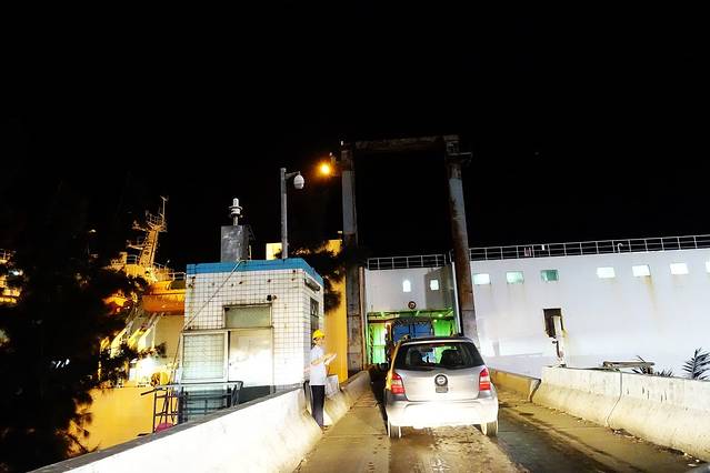 晚上8点,终于轮到我上船了,其实也不用担心,有点经验的司机都能很容易的开上船的,不过当然,最先决的条件就是,一定要慢一些。