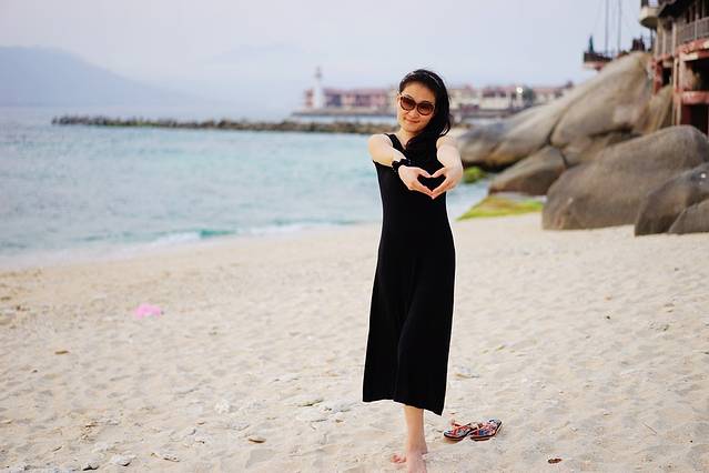 可惜我总觉得在海边穿黑裙子不太漂亮呀。不过这条裙子比较显身材。