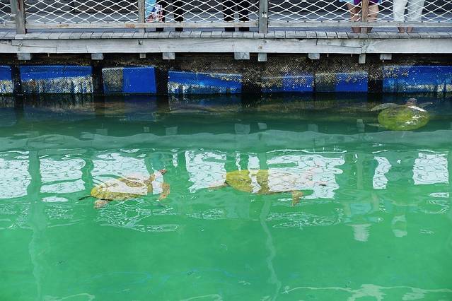 经过游客中心不远就是海洋文化馆,其实就是一片养着各种海洋动物的地方,馆不大,海洋动物倒还是不少的,有海龟、海豚、海狮等,最厉害的是这里养有一条比较大的鲸鲨,这个貌似比较有看头。
