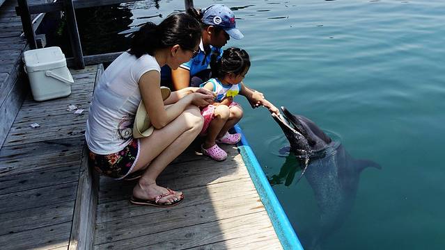 如果有小孩的话,最好花点钱,来个喂海豚的项目吧,虽然50块钱只给了四条小鱼,但也满足了小孩的好奇心。这海豚很可爱,一看到你招手它就游过来了,不过要小心一些,不要手伸得太长,被咬伤可就不好玩了。