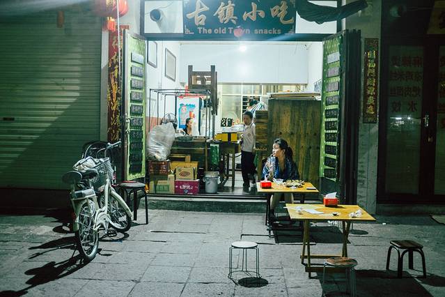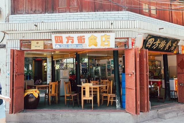 晚上九点我俩肚子饿了,门口只有小摊,又打开大众点评网,发现有个地方叫四方街不错的