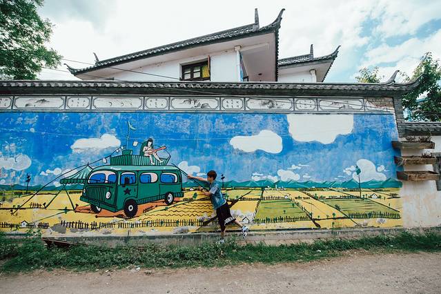 我就在村里绕啊绕,发现一大片涂鸦墙
