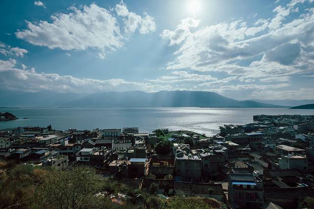 阳光洒在洱海上,特别特别美