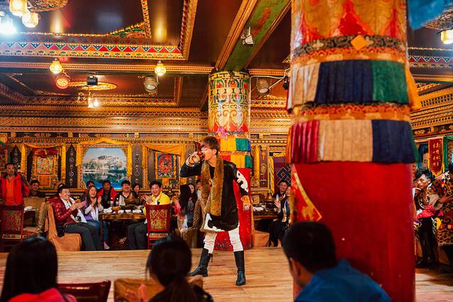 晚上去藏民家访,看看表演可以,里面的饭菜还是有些难以下咽