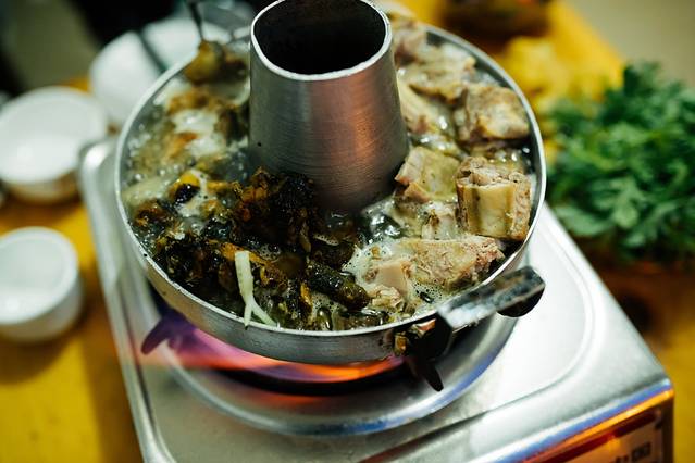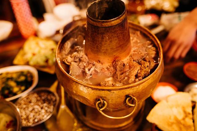 因为高原的缘故,饭煮不熟,肉也不熟。