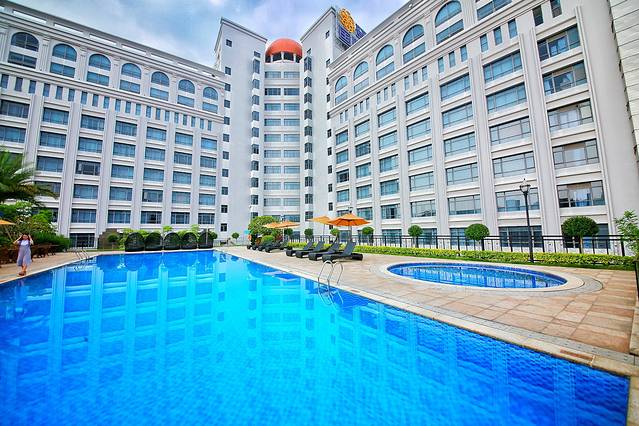 午饭后稍作休息,办理好退房手续,在酒店随处逛了一逛,还没好好看看这个住了一夜的五星级酒店!4楼有一个泳池,和空中花园,碰巧遇到举行婚礼的。场地布置的好美丽。