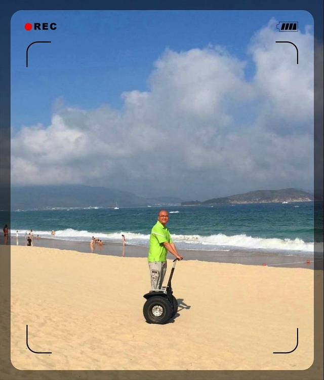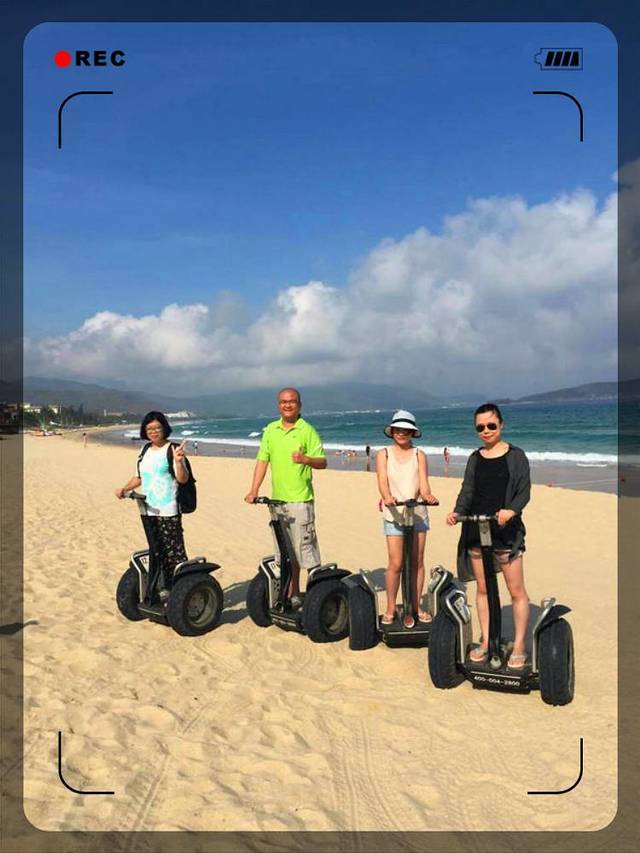 之前在平地上体验过灵动车的快感,这次在海滩边,我们也快乐的玩了几圈。