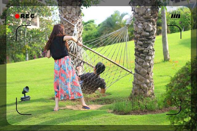 “摇摇,摇到外婆桥”安全设计的吊床,下面还有沙池防护,看这小情侣玩得多欢