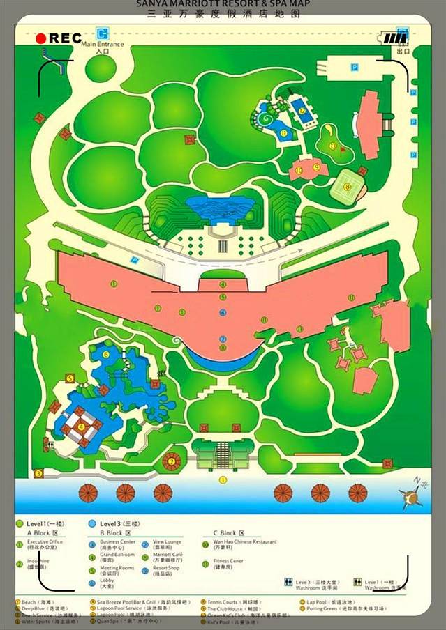 单看这度假地图,就知道酒店占地之广,园林范围之大,餐饮娱乐服务设施之齐全了。宁静的园林,清澈的泳池,还有私属海滩和中央草坪。