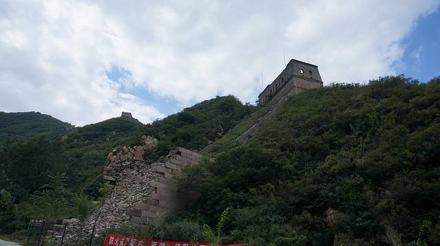 这次来是想看看清水顶长啥样?景区里游客很少,买票登城,长城上空空荡荡的,有些惬意,爬了1个多小时,3公里左右,就登上清水顶了,这段长城和下面的石峡关都承包给了同一家古建工程队进行修复,现场还处于施工状态,修旧如旧。另外惊奇的发现下面石峡关原来的沙石路已经变成柏油路了,以后车可以直接开进来,方便很多。中途休息的时候就在想李自成到底从哪儿破关呢?研究之后发现,这里和石峡关都不是他破关的地方,原因是花家窑口严谨的防御体系和古长城景区-花家窑口之间那条几乎不太可能走兵马的山谷,长城把山谷包在内侧,山高谷深,绝好的伏击地方啊。