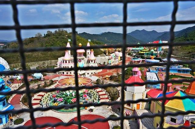 就连一直被我成为惊险刺激代表作的摩天轮也是粉红色的。因为这里的摩天轮融入了海盗船的元素,所以更为刺激一些。坐在粉红色的活动座舱里,俯瞰下面一座座粉红色的城堡、乐园,仿佛在做一场梦。