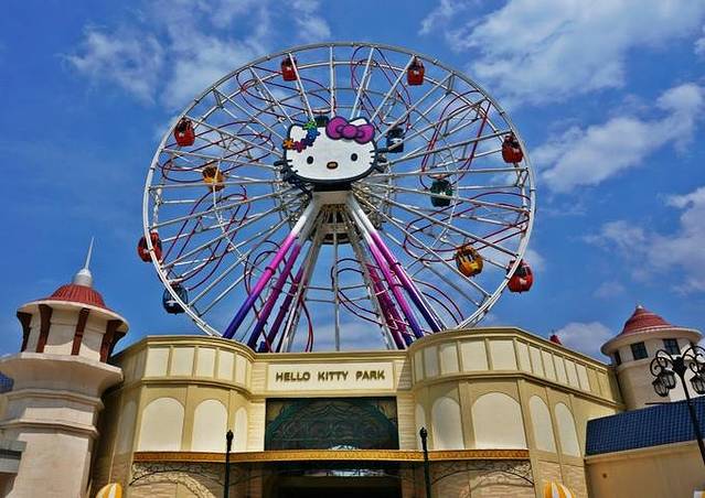 次日早早起床,整理了下行李,开始去hellokitty主题乐园。师姐留言说,那里藏着大大的粉红梦,去看看吧,当个小公主。