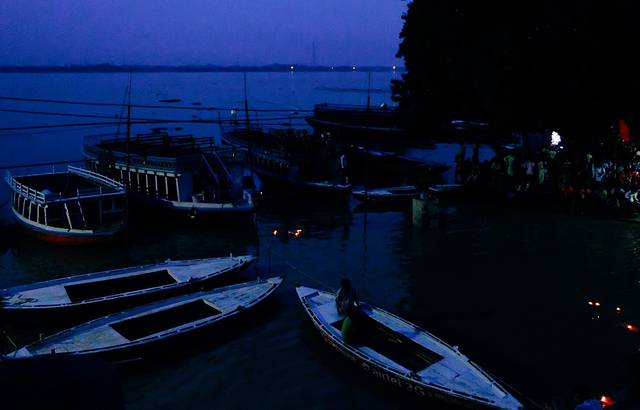 这样的恒河,有船想解开绳索都会被老人喝住,哪里还看得到高台上的夜祭