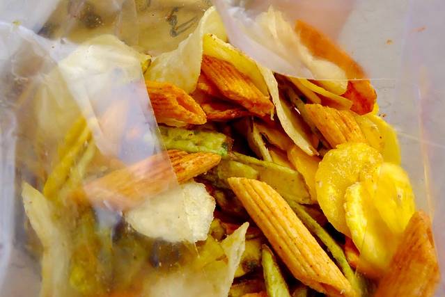 炸货们,辣香蕉片辣通心粉都好吃~