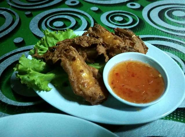 酒店没有餐厅,最近也要徒步10多分钟到附近路边的马来村用餐或购物,俺便在回程中途的路边餐厅用晚餐,三只脆炸大虾11元+柠檬冰3元+米饭2元=16元,但俺在吃它,蚊子在吃俺啊!只能边拍蚊边吃了。为了睡懒觉与多享受酒店环境,俺特意买了两个3元杯面回去当早餐。