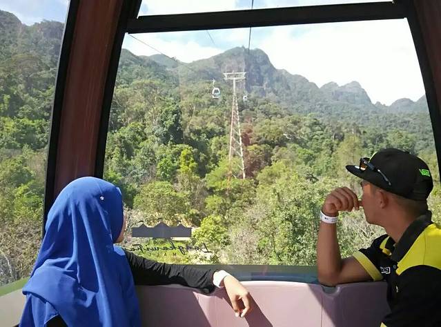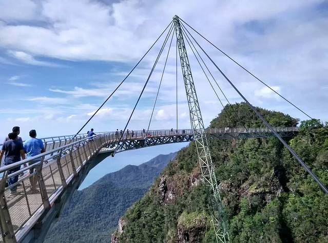 本来俺想徒步登山到“天空之桥”,一问才知只能坐缆车,无路可登。缆车费上下共80元(包含几分钟无聊的环幕动画过山车),虽然俺无“恐高症”,但依然感到心惊胆战啊!缆车离地万丈,直上直下,尤其出发、到达和过中途点时,总是加速并摇晃着,实在太恐怖了!建于山顶两山之间的“天空之桥”另收费10元,弧形的钢铁吊桥横跨于高山之巅,的确壮观震撼,山顶观景台几乎可一览全岛风光啊。你说人家马来人咋那么傻呢?连一向吝啬成性的俺都觉得收费便宜,要是俺们,别说缆车费了,起码另收百元起价的门票费,再圈地围山,又可收个环保车费啦!