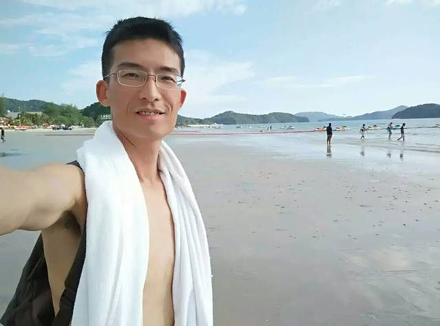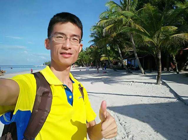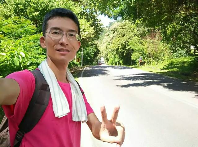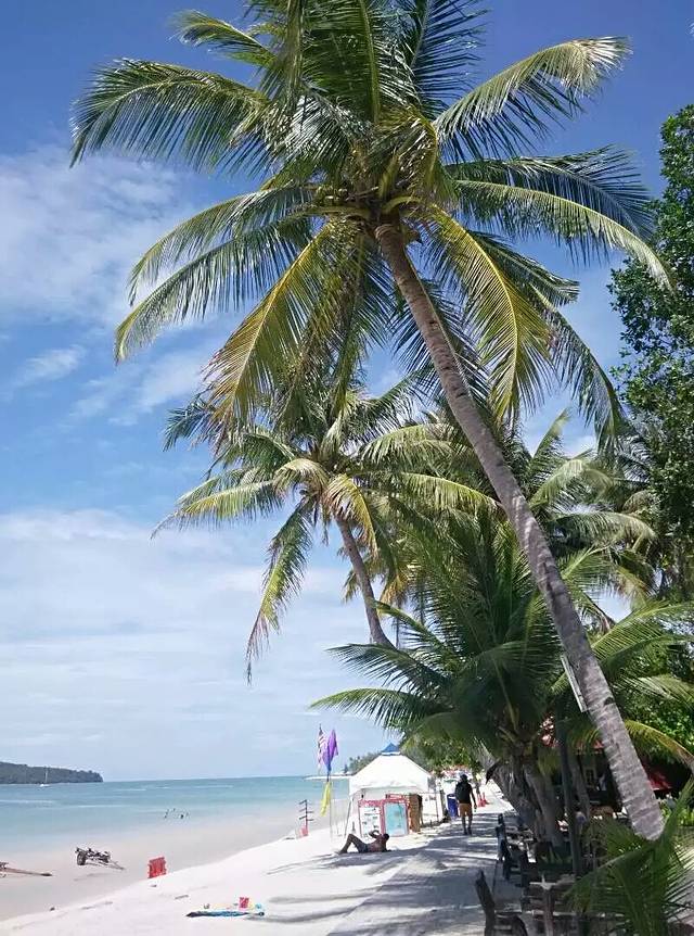2)次日早餐后又顺路再逛了海滩一遍,碧海蓝天、椰树白云的美景看不够啊!咋舍得离开呢?但还要继续新一天的艰苦徒步呀!咬牙转身走吧!老天爷对俺不薄啊!好人有好报啊!上天总是眷顾有心人的,不忍心俺头顶烈日长途徒步太艰辛,特意亲自下凡化身为“中年秃顶华裔司机大哥”帮俺啊!俺才徒步了两小时约一半路程的10公里多,一名租籍福建的大哥就主动停车载俺啦!本来说只送俺到最近的路口,想不到又悄然送到酒店门口,他说看时间还早,他不赶,好感动,大爱啊!