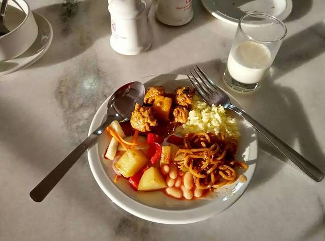 来到兰卡威岛州府所在的瓜洲镇,就来到了俺们老百姓的实惠消费天堂啊!马来人用餐都爱自选菜品,然后再由店家定价,童叟无欺啊!酒店附近小餐厅的自助午餐才9.5马币约18元,比珍南海滩便宜多了,还有俺至爱的美味香甜绿豆沙呢!好饱好满足啊!最主要是俺还请了一只可爱的花猫吃了一顿鱼骨大餐呢!