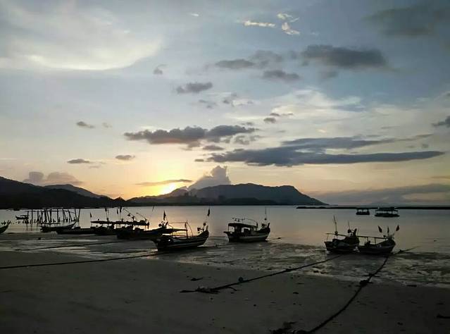 正午烈日下的珍南海滩是典型的热带海岛沙滩风光,蓝天白云、椰树碧海、沙白水清,但细节处还是有点垃圾的,也无伤大雅嘛。游客不多,挺清静惬意的,但大太阳啊!只能去酒店待到傍晚再来畅泳了。可惜沙质既黄又粗,而且有许多小贝壳啊!有些地方挺搁脚的,水中还疑似有水母肢体漂浮,不敢久游啊!漫步海滩来回走一遍,就为了等待日落美景,据说也是相当美的,故非常期待,可惜远不如沙巴丹绒亚路的日落绚丽多彩啊!可能是俺无缘一见其最美时刻吧。