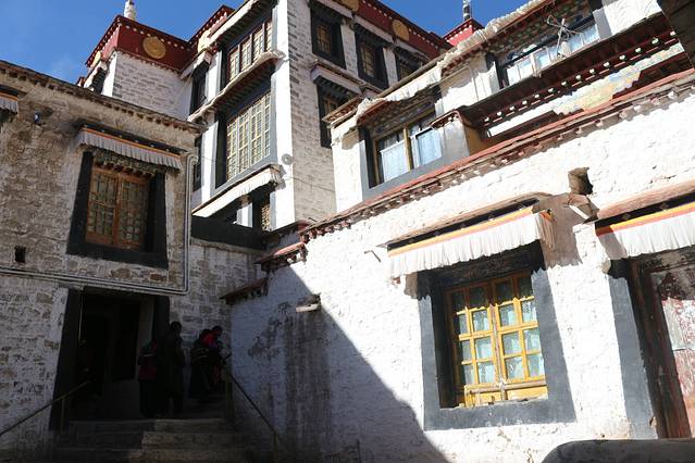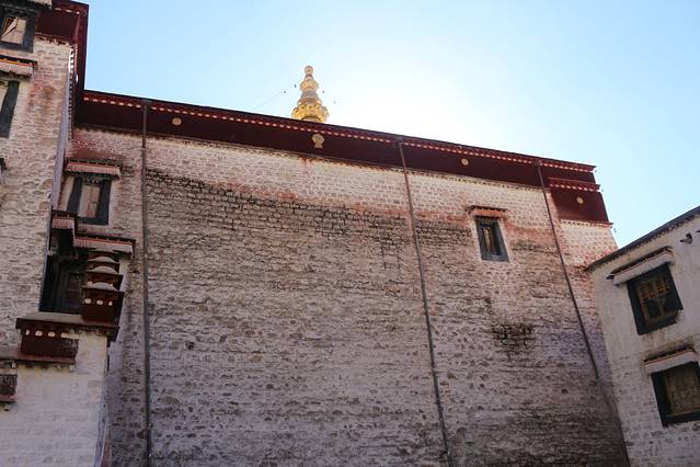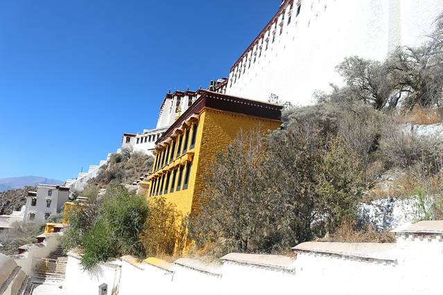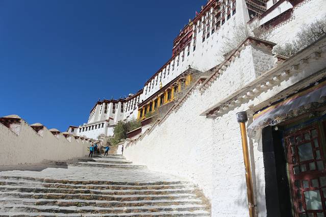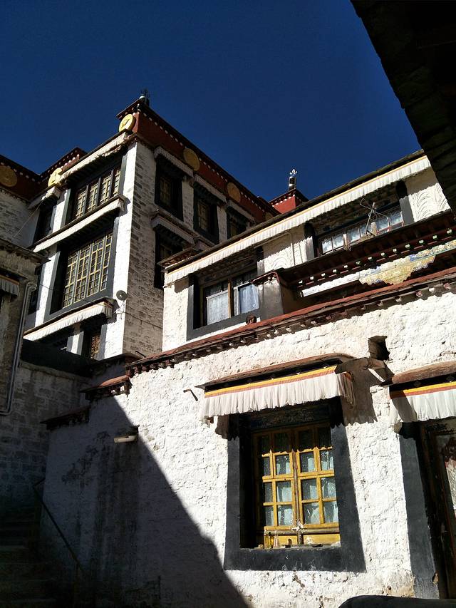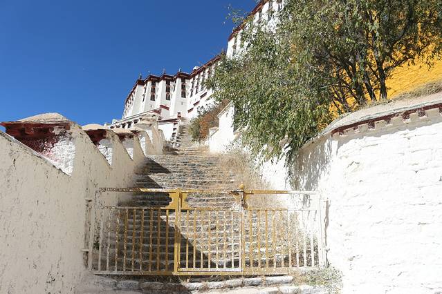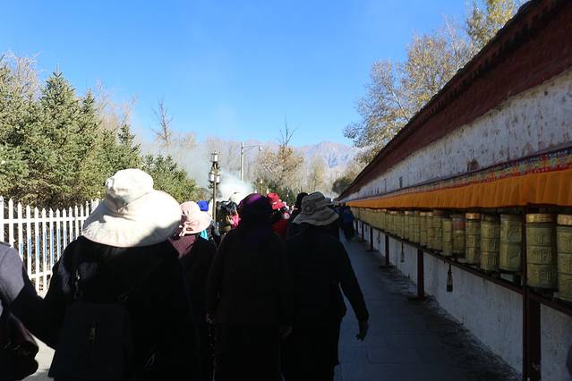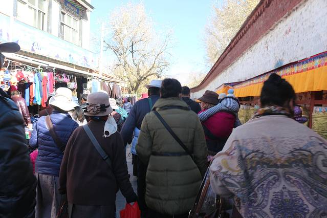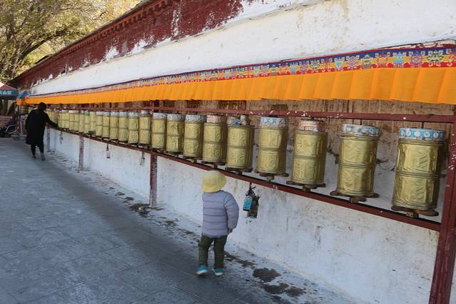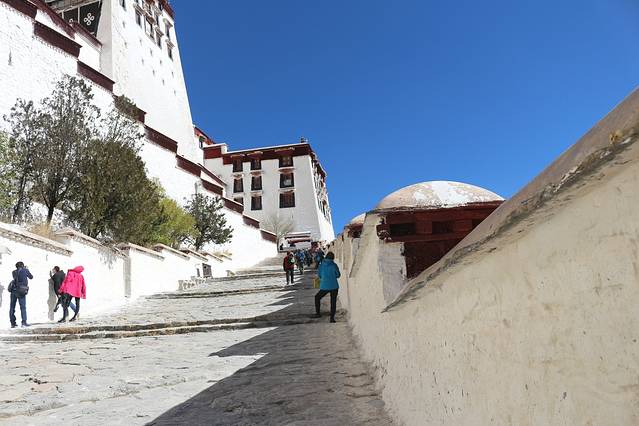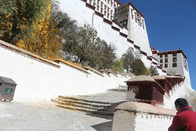 绕了公园出来以后,还是一条购物街,我在布达拉宫西门进去的,门票是一百元,淡季也不需要预约。进去还是跟随别人走,不怕迷路就对了,哈哈,这个还是当地人比较多,里面有可能是会遇到要给你讲解的人员,是收费的,五十元一位。可以考虑。里面好多还是不让拍照的,比较累,记得带一瓶水,慢慢爬,可以多休息一下,这边都是有长凳子的,在半山腰也有卖东西的,当你跟随别人进入供佛的屋子里面时,不能拍照,不能带帽子,可以放钱进去,这种地方好多,你可以兑换一大把一毛的或者五角的,可以多放几个地方了就,你看到当地人你就会知道他们是有多么的虔诚,大多数还是当地人,毕竟是淡季嘛。信仰。心静,不过要是突然发现就你自己一个人时,也会非常害怕的,里面是比较暗的,阴的,所以千万要跟随当地人的哦,不会迷路,不过也只有一条路,跟着走绝对是没有问题的。