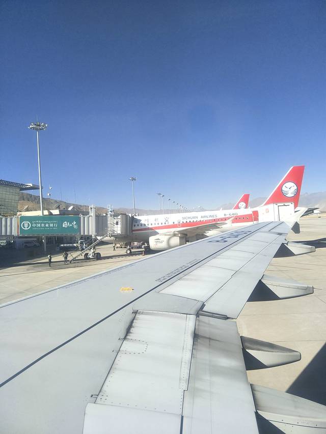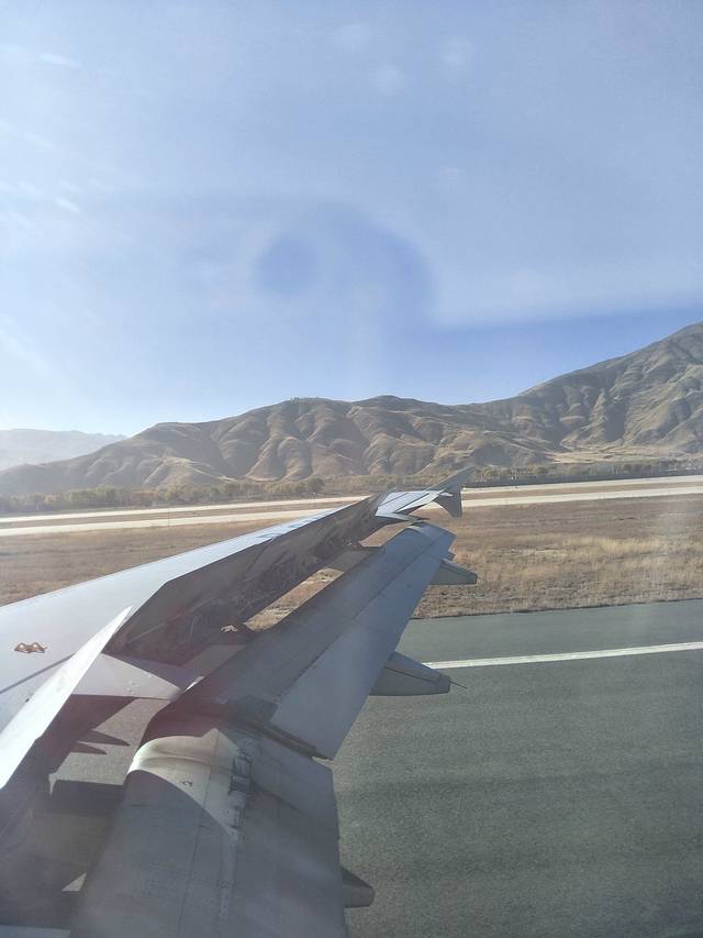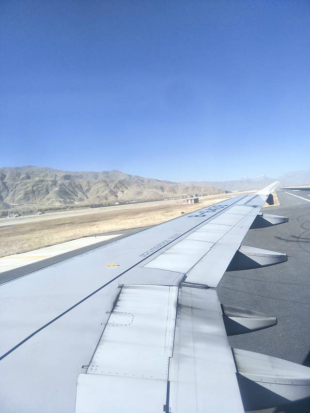 从北京飞往拉萨,我们是在西安转机过来到拉萨的,去时飞机票是710元,去之前一直在看最便宜的机票,还可以。拉萨天就是这么蓝,太阳暖洋洋的,很舒服的,比北京的天气好的不是一点点。虽然已经入冬。