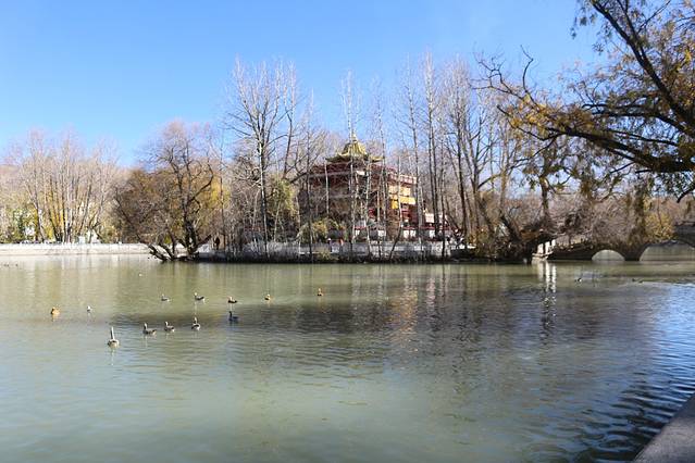 这个公园里面有好多人的,卖东西的,乞讨的,朝拜的,闲逛的,人好多好多,开始我以为是八廓街,无知的我,随着别人绕了一圈,里面是有一个小寺庙,十元的门票,可以进去看一下,反正我是没有进去的。不能逆行,跟着别人走就对了。