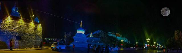 店家拍的拉萨夜景,有大月亮的晚上。
