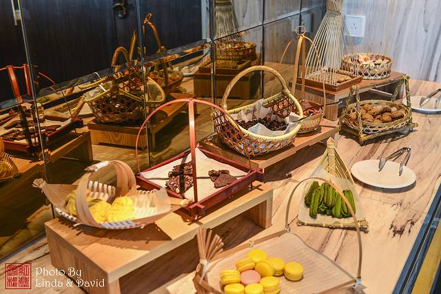 各类中西式的烘焙点心可以随意取用,放置器具也非常有江南水乡特色。