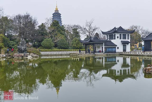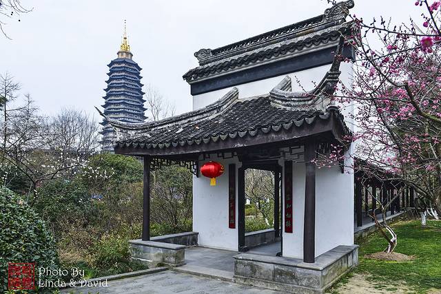 赏梅长廊,完全的江南园林连廊建筑,和远方的天宁宝塔遥相辉映。
