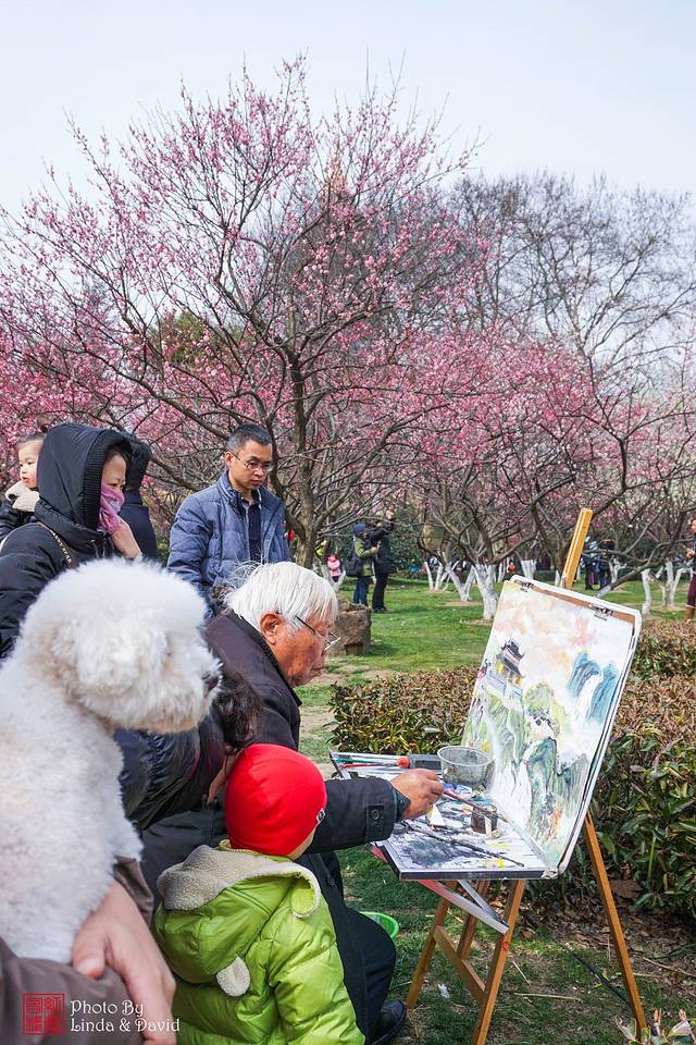 春日美景,自然也吸引了文人墨客前来挥洒泼墨,老先生在作画引来了游客的围观,只有贵宾小朋友表示木有兴趣,哪里有好吃的?