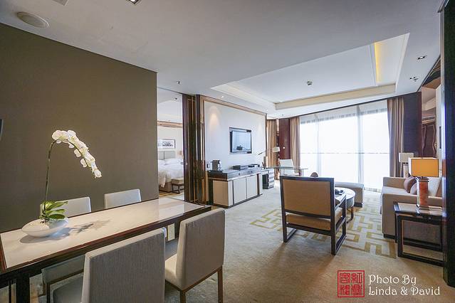 酒店的客房,分为豪华客房、行政套房和两个总统套房。行政套房的套内面积很大,宽敞豪华。