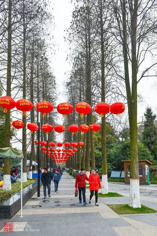 乍暖还寒时节,穿着冬装前来踏青的游客还是很多的,公园的布置也是延续着春节的景象:大红灯笼高高挂呢!